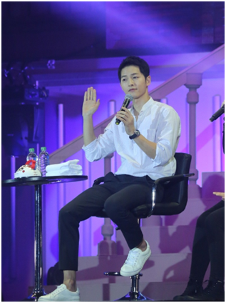 作为2016宋仲基亚洲巡回粉丝见面会大中华地区的首站,本次粉丝见面会仲基欧巴以流利中文开场:“大家好,我是宋仲基,我很紧张。”并且自称自己是个很害羞的人,台下粉丝则齐声喊道:“不紧张!”予以最最疼爱的回应。仲基欧巴更与幸运的“松果”们来了一场零距离亲密互动!在回答粉丝们的羞涩小问题的环节,当被问到喜欢什么样的女孩时,他袒露自己喜欢短头发的女孩!并且可以接受跨国恋!这样的兴奋时刻怎能不羡煞一众“松果”们!